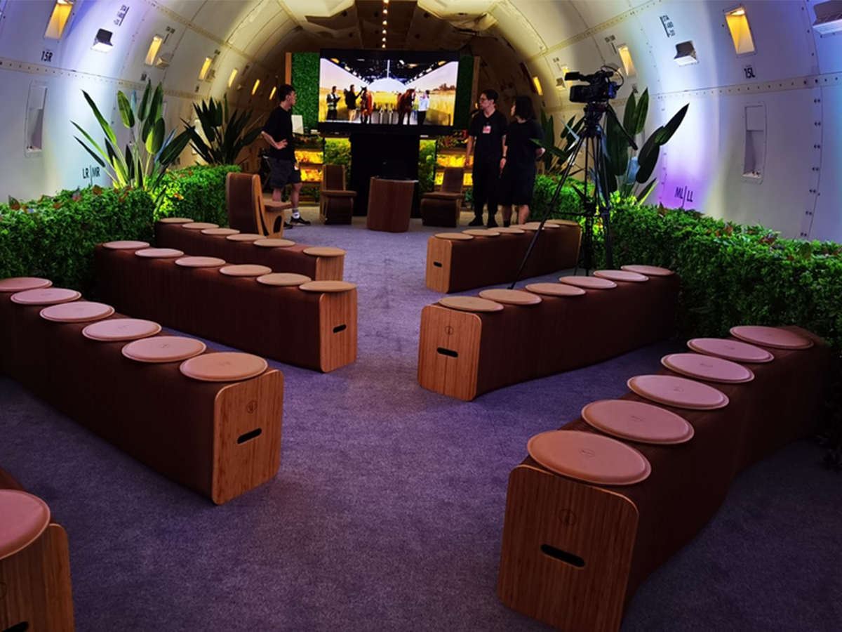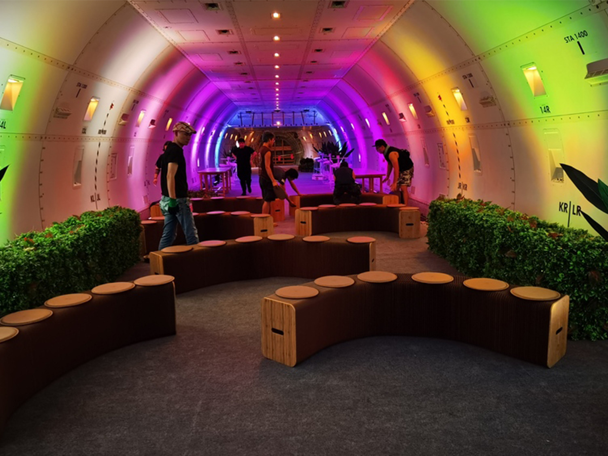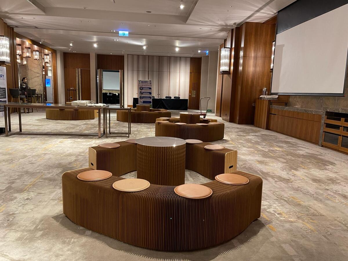 Regardless of traditional furniture rental, Eagle Focus still provide fantastic paper furniture rental&sale service for various event. Farewell to limitations, create possibilities, and constantly brings surprises to new life. Accordion paper furniture is a piece of furniture make of recycle kraft paper, unique honeycomb structure make it has strong bearing capacity up to 300 kg. Meanwhile, it can be extended and shaped freely, folded as a small book.